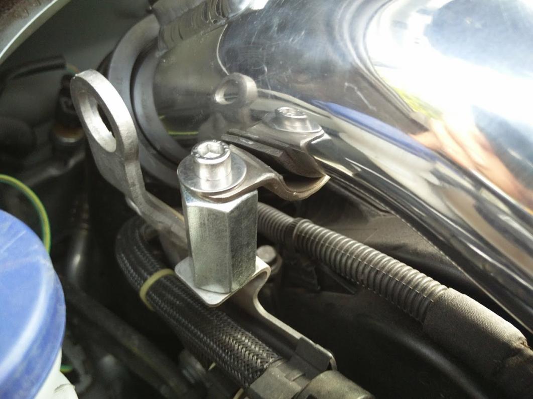 4) Ça frotte pas mal sur la fixation alu d'origine alors j'ai préféré la meuler un petit peu: