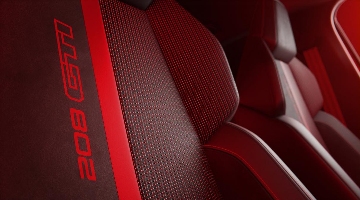 Cette couleur rouge emblématique apporte également son dynamisme et son énergie à l'intérieur de la PEUGEOT E-208 GTi.