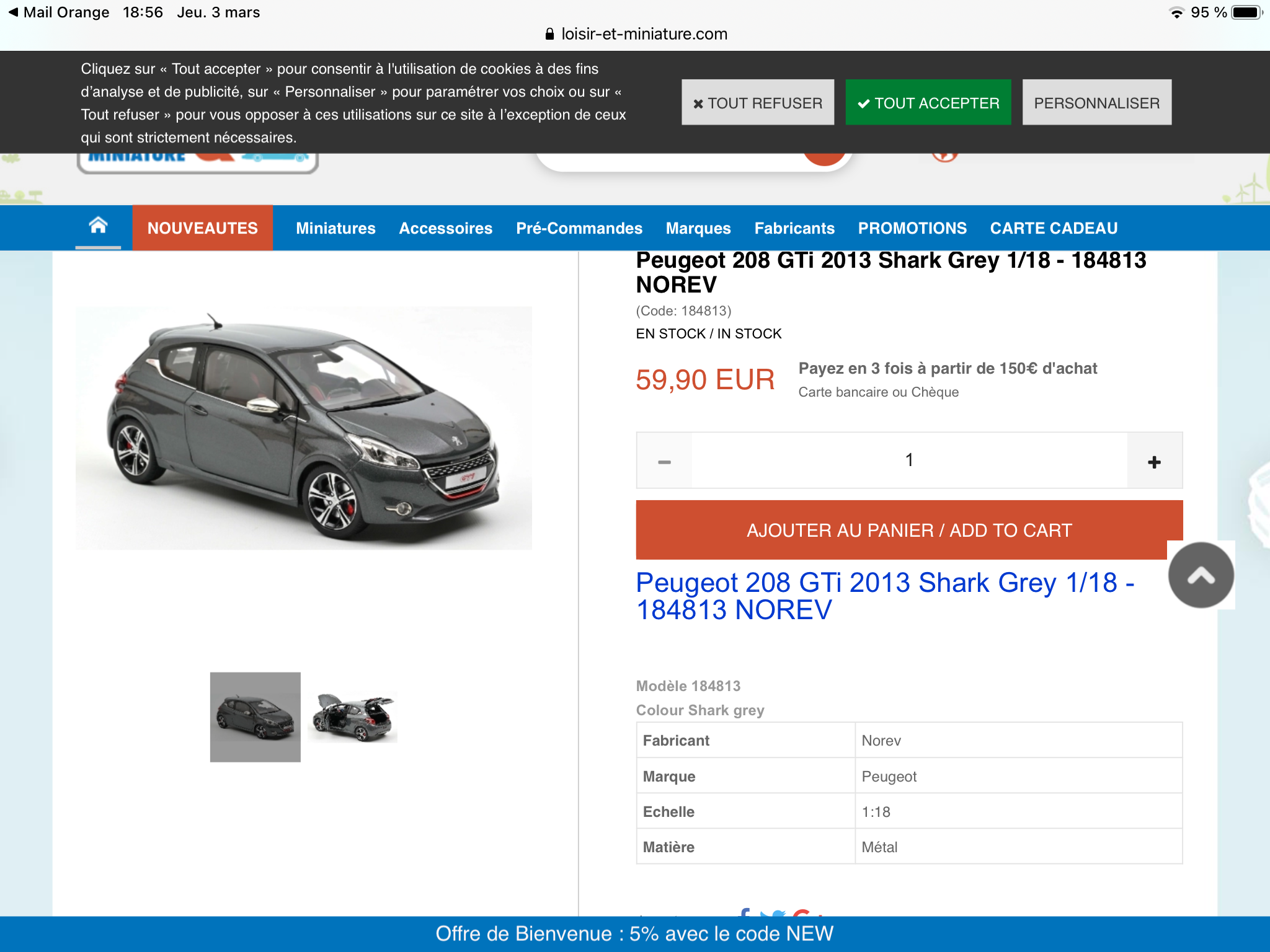 Voilà la 208 gti gris shark 1 18 norev est en vente