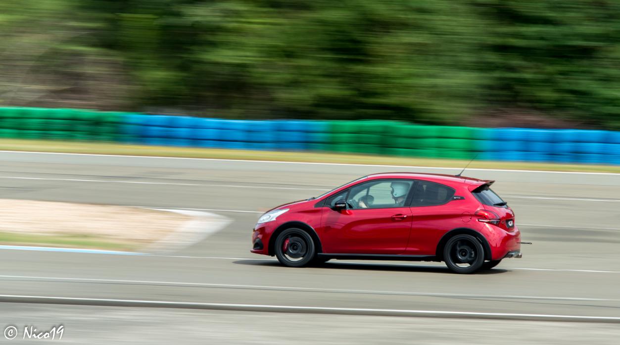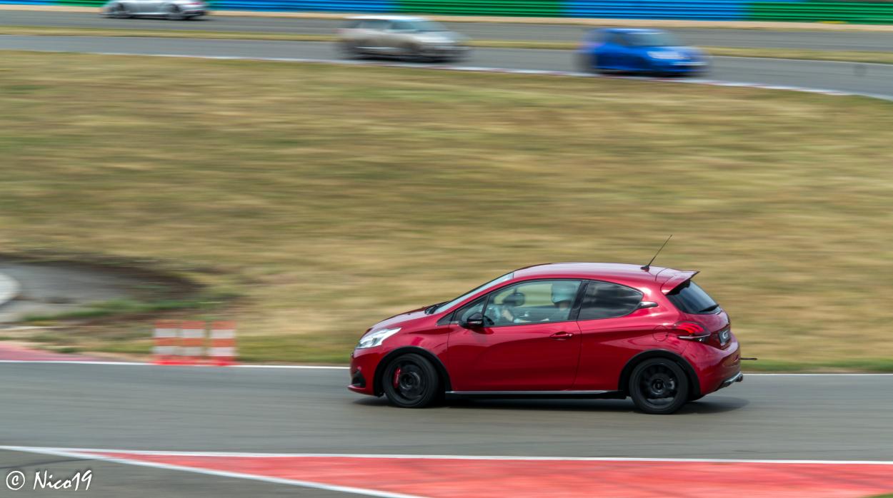 il y avait des plaquettes typées piste. Bah, je n'ai pas été convaincu. Ca freine très très bien, certainement mieux que mes Brembo, mais la sensation à la pédale n'était pas top : pas assez de mordant, et pédale pas assez dure à mon goût. En reprenant la 208, j'ai failli manger mon parebrise en appuyant - involontairement - comme j'ai dû le faire avec la F488. J'aurais dû me mettre au freinage pied gauche, j'aurais davantage tapé dans la pédale.