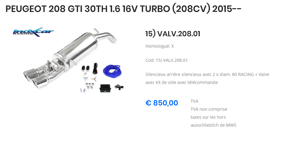 inoxcar viens de sortir un silencieux à valve pour la 208 ph2 sur leurs site